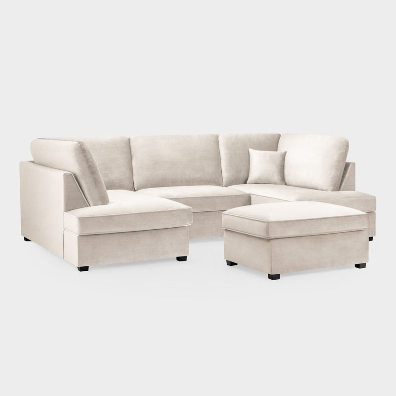 Beige Fabric Right Hand Facing L Shape Corner Sofa